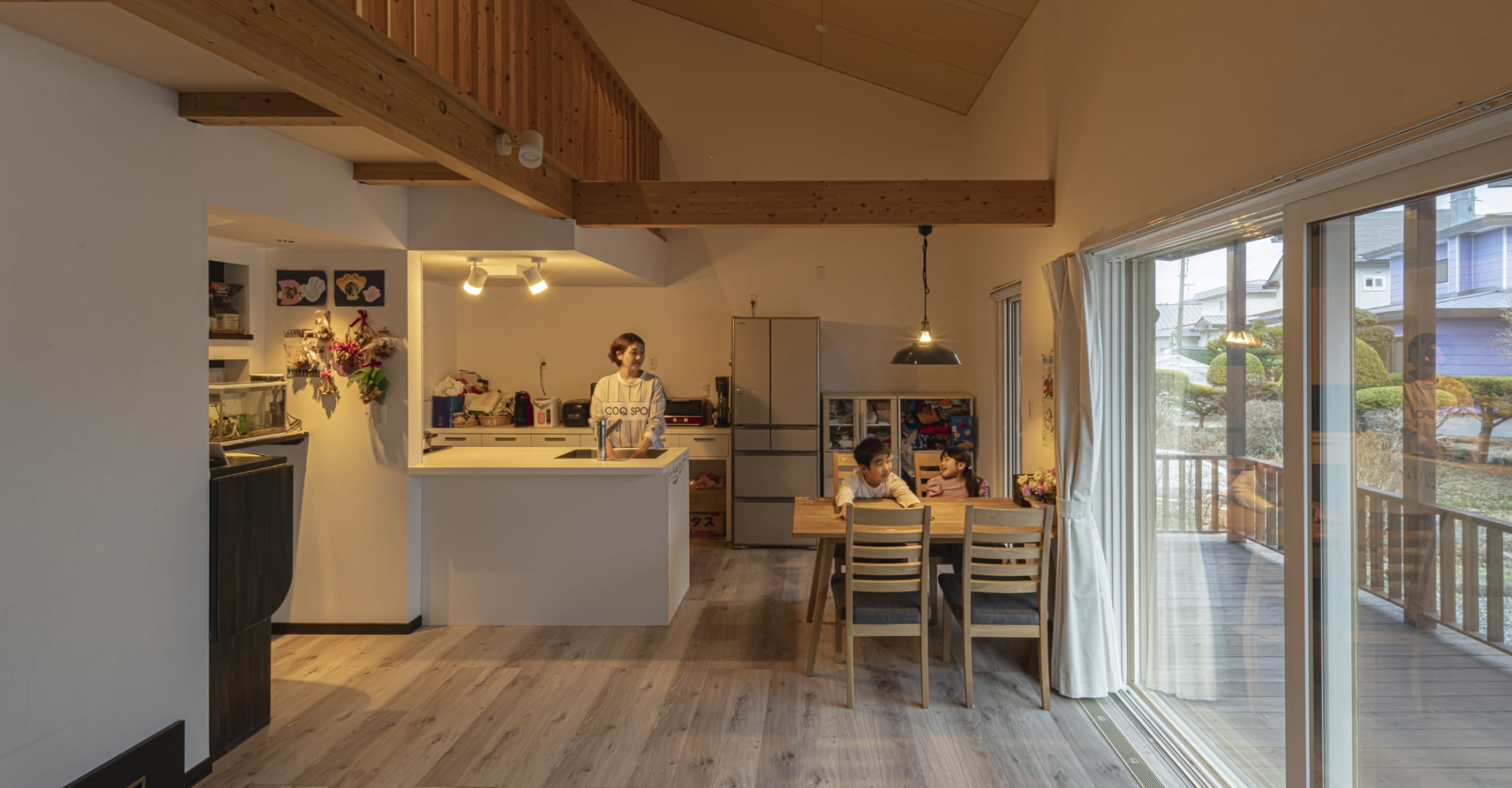 ウッドデッキや庭と室内をスムーズにつなぐ動線設計をご提案。