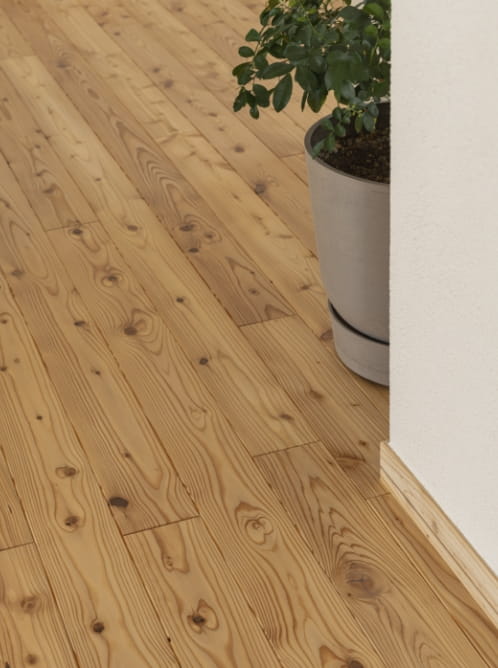 床は北海道の雄大な自然が育んだカラマツやトドマツの無垢2層フローリングを採用し、